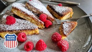 Basic and substantial French toast from the dining cars of the railroad that served the Omaha stockyards