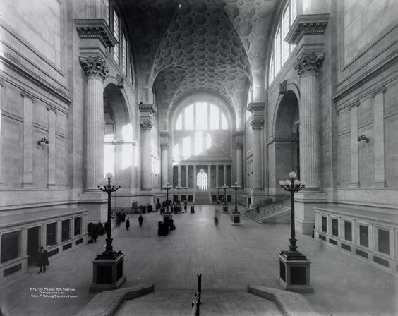 If you’re a fan of US railways at all, or a New Yorker, you may be one of those for whom it’s hard to hear the words “Pennsylvania Railroad” and not think of one of the great train stations of the world, an astonishing building that once dominated Eighth Avenue from 31st to 33rd Street, and is now gone… only scraps and tatters of its former magnificence lingering here and there, buried underground. (And if you were a New Yorker in the early 1960s, you may remember the bitter comments on this loss by critics of the time: especially the one who—comparing the new Penn Station to the one it replaced—wrote, “[Once] one entered the city like a god; one scuttles in now like a rat.”) *